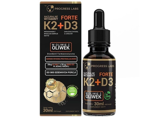 PROGRESS LABS Naturalna Witamina K2 MK-7 + D3 FORTE 30 ml opis