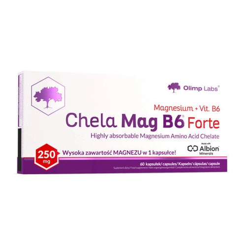 Suplement diety Chela-Mag B6 Forte to produkt, który posiada nagrody takie jak Złoty Medal Albion, Nagroda Profesorów Farmacji 2009 oraz Złote Godło Quality International 2009. Tak liczne odznaczenia nie pozostawiają cienia wątpliwości odnośnie najwyższej jakości oraz skuteczności tego doskonałego preparatu. Liczne badania naukowe oraz testy, jednoznacznie potwierdziły wysoką biodostępność chelatu aminokwasowego Albion, który jest zawarty w Olimp Chela-Mag B6 Forte. Taka forma magnezu zapewnia również odpowiednią absorpcję z przewodu pokarmowego tego kluczowego pierwiastka. Ponadto chelat gwarantuje wysokie bezpieczeństwo stosowania, ponieważ jest zupełnie hipoalergiczny.