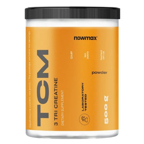 nowmax® TCM Tri Creatine to suplement zawierający najwyższej jakości jabłczan kreatyny. Jest to składnik, który powstał z połączenia jednej cząsteczki kreatyny z dwoma cząsteczkami kwasy jabłkowego. Takie zastosowanie zapewnia większą stabilność substancji, dzięki czemu wykazuje inne działanie niż podstawowy monohydrat. Ze względu na trójdzielną budowę TCM nie ulega aż tak łatwemu rozpadowi w układzie pokarmowym.