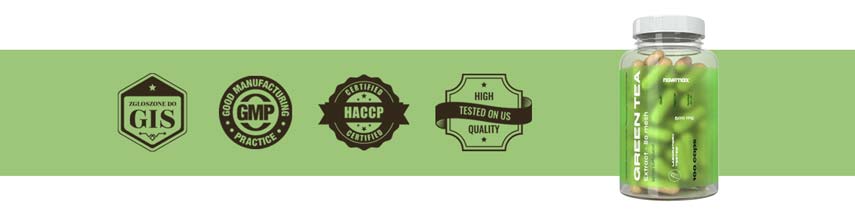 - Wysokiej jakości ekstrakt z zielonej herbaty zamknięty w kapsułkach. Regularne stosowanie niniejszego składnika wpływa pozytywnie na funkcje organizmu oraz wspomaga redukcje masy ciała.