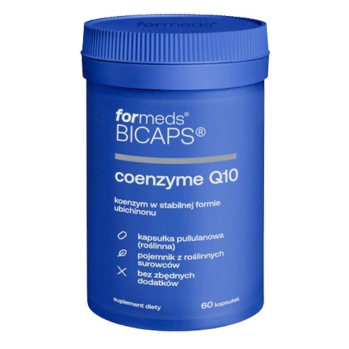 - BICAPS Koenzym Q10 to zawierający 100 mg koenzymu Q10 oraz 80 mg inuliny w 1 kapsułce. Ma kompleksowe działanie dla organizmu. Odpowiedni dla wegan i wegetarian.