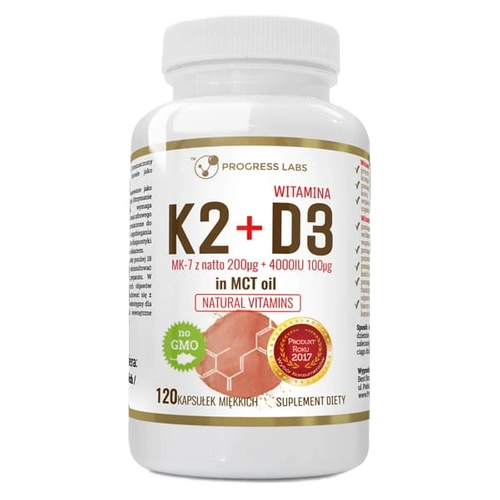 PROGRESS LABS Witamina K2 MK-7 200mcg+D3 100mcg 4000IU IN OIL MCT 120 kaps