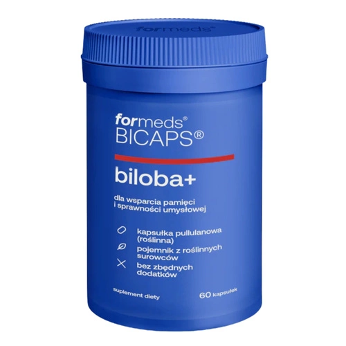 - Suplement diety FORMEDS BICAPS BILOBA+ zawierający aż 7 aktywnych składników dla zachowania prawidłowego funkcjonowania układu nerwowego.