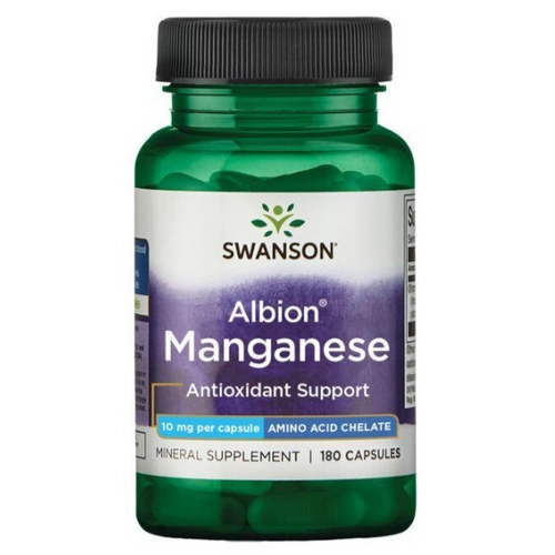 - Preparat SWANSON Albion Chelat Manganu 10mg 180 kaps marki Swanson, jednej z najbardziej uznawanych firm suplementacyjnych na świecie to suplement diety posiadający w swoim składzie Mangan o wyokiej biodostępności.