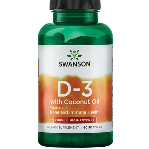 SWANSON Witamina D-3 2000IU z olejem kokosowym 60 kaps