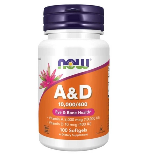 NOW FOODS Witamina A 10000 IU + Witamina D3 400 IU 100 kaps - opis