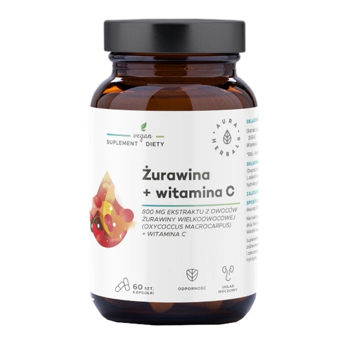 AURA HERBALS Żurawina 800 mg + Witamina C 60 kaps opis