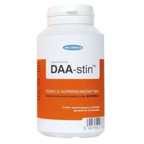DAA (kwas D-asparaginowy) jest naturalnym składnikiem o dobrze poznanym procesie działania i skuteczności. Jest to prawoskrętna (D-) forma kwasu asparaginowego, która wg badań i obserwacji wykazuje znacznie większą aktywność anaboliczną.