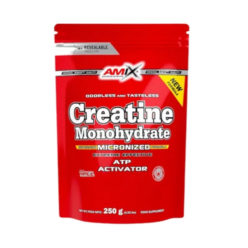 Produktem marki AMIX jest czysty monohydrat kreatyny w postaci proszku który doskonale odnajdzie swoje zastosowanie w gronie sportowców. Preparat rewelacyjnie przyczynia się do rozbudowy masy mięśniowej, utrzymując odpowiednią stan mięśni. Co więcej, wspaniale dodaje energii oraz sił witalnych, co może przełożyć się na zwiększenie efektywności wykonywanych treningów. Dodatkowo suplement ten świetnie wspiera szybki proces regeneracji organizmu po zakończeniu intensywnych ćwiczeń. Ponadto korzystnie wpływa na kondycję fizyczną, wzmacniając wytrzymałość. Kreatyna występuje w formie znakomicie rozpuszczalnego proszku w wodzie, co powoduje że suplementacja jest niezwykle prosta i przyjemna.
