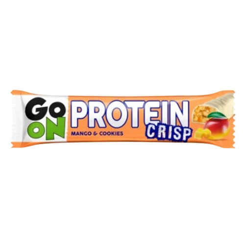 GO ON Protein CRISP bar to pyszny baton wysokobiałkowy w polewie z białej czekolady, z koncentratem białka WPC, z kuleczkami, chrupiącymi ciasteczkami i owocami mango. Proteiny zawarte w produkcie wspomagają rozbudowę masy mięśniowej i wpływają na wzmocnienie kości. Baton został stworzony dla wszystkich, którzy poszukują szybkiej i zdrowej przekąski, a także dla osób lubiących sport. Baton wysokobiałkowy GO ON to idealna alternatywa dla niezdrowych i przepełnionych pustymi kaloriami produktów. Znakomicie nasyca i zmniejsza uczucie głodu na dłuższy czas. Może też sprawdzić się jako zamiennik jednego posiłku w ciągu dnia, kiedy nie masz czasu na przygotowanie czegoś wartościowego.