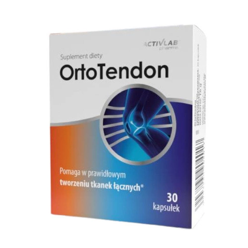 ACTIVLAB OrtoTendon to suplement diety w formie kapsułek, zawierający w składzie siarczan chondroityny, kwas hialuronowy, kolagen, witaminę C i mangan. Taka formuła niesie pozytywny wpływ na pracę stawów, kości, ścięgien i więzadeł. Stosowanie produktu ochrania, uelastycznia i regeneruje stawy, zmniejszając ból i problemy z poruszaniem się. Witamina C bierze udział w syntezie kolagenu, który jest podstawowym budulcem kości, stawów, chrząstki, ścięgien, skóry, a jego zadanie to zmniejszenie aktywności enzymów mających wpływ na rozwój stanów zapalnych. Zbyt niski poziom kolagenu może powodować odwapnienia szkieletu kostnego, co przyczynia się do kruchości kości, złamań i urazów.