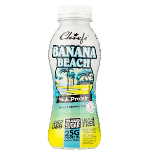 Wysokobiałkowy, niskowęglowodanowy mleczny szejk marki CHIEFS o pysznym bananowym smaku. Gotowy koktajl o kremowej, jedwabistej konsystencji dostarcza 25g białka w mniej niż 180kcal. Jest to więcej białka niż w przeciętnym, wysokobiałkowym batonie, jak i również mniej kalorii. Produkt idealny zwłaszcza po ciężkim treningu, lecz także do zabrania ze sobą na wycieczkę. Odpowiedni dla wegan i wegetarian oraz dla osób nie tolerujących laktozy i glutenu.