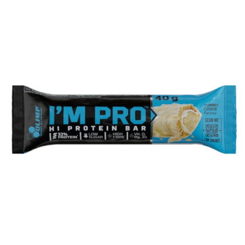 OLIMP Im PRO Protein Bar to sycący baton białkowy, w pysznym ciasteczkowym smaku, idealny dla osób aktywnych fizycznie i dbających o zdrową dietę. W każdym batonie znajduje się 13 g białka, które wspiera budowę masy mięśniowej. Baton zawiera niską zawartość cukrów (1,5 g w porcji), co sprawia, że jest idealnym wyborem dla osób, które zwracają uwagę na ilość spożywanego cukru. Dostępny w pysznym smaku, z pewnością zaspokoi podniebienia i dostarczy potrzebnych składników po intensywnym wysiłku fizycznym. OLIMP Im PRO Protein Bar to doskonała przekąska po treningu, wspierająca regenerację mięśni i dostarczająca energii na resztę dnia.