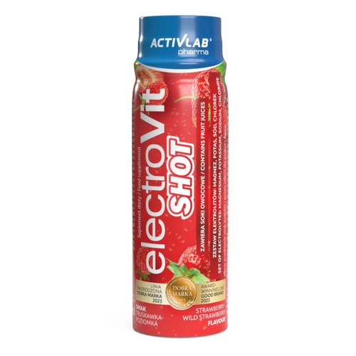 ACTIVLAB ElectroVit Shot 80 ml to wygodna forma shota o smaku poziomkowo-truskawkowym zawierająca w składzie - magnez, potas, sód, chlorek oraz glukozę. Takie połączenie minerałów sprawia, że produkt skutecznie uzupełnia niedobory elektrolitów utraconych podczas aktywności sportowej. Jest wyjątkowy napój stworzony z myślą o aktywnych osobach, które potrzebują szybkiego i skutecznego uzupełnienia elektrolitów oraz witamin po intensywnym wysiłku fizycznym. Ten mały, ale potężny shot zawiera specjalnie dobrany zestaw składników, który wspiera szybką regenerację organizmu oraz zapewnia dodatkową energię.