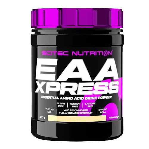 SCITEC EAA Xpress 400 g to suplement diety mający w składzie aminokwasy egzogennektóre są niezbędne dla organizmu, ale muszą być dostarczane z pożywieniem, ponieważ organizm wytwarza ich samodzielnie. Jest to produkt w formie proszku o smaku truskawkowo-arbuzowym o wysokiej rozpuszczalności. Skład preparatu opiera się na kompleksie aminokwasów EAA wraz z aminokwasami BCAA Są one niezbędne do prawidłowego funkcjonowania organizmu, w szczególności mają znaczenie dla aktywnych sportowców. Uczestniczą w syntezie białek, mając wpływ na rozbudowę beztłuszczowej masy mięśniowej w znacząco szybszym tempie.
