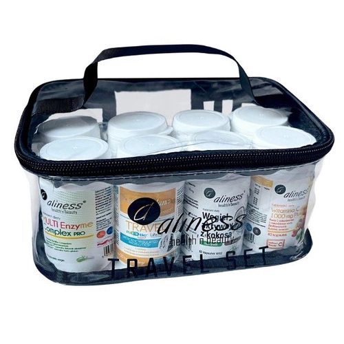 - ALINESS Travel Set to kompletny pakiet suplementów diety, stworzony z myślą o komforcie podróżnych. Dzięki niemu nawet dalekie podróże stają się łatwiejsze i przyjemniejsze, niezależnie od zmian strefy czasowej czy diety.