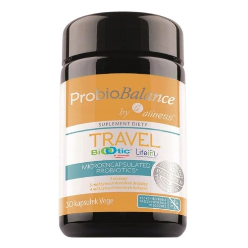- ALINESS ProbioBALANCE Travel 30 vkaps jest to suplement diety, który wspiera pracę jelit podczas podróży.