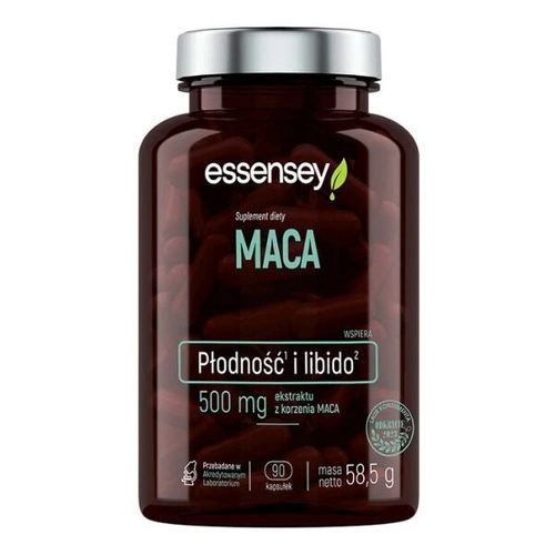 - ESSENSEY MACA to suplement diety oparty na wyciągu z korzenia maca. Jest doskonałym wyborem dla osób pragnących poprawić płodność oraz jakość życia seksualnego, a także dla aktywnych fizycznie, zapewniając dodatkową energię i wytrzymałość.