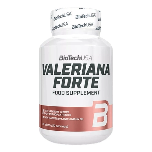 BIOTECH Valeriana Forte to suplement diety stworzony z myślą o osobach, które narażone są na dużą ilość stresu w trakcie dnia i pragną wspierać równowagę swojego układu nerwowego oraz poprawić jakość życia w obliczu codziennych stresów. Zawarte w suplemencie wyciągi z roślin w sposób naturalny pomagają w kontroli poziomu kortyzolu i wspierają wyciszenie się przed snem, ułatwiając zasypianie. Z dobroczynnego działania suplementu Valeriana Forte korzystać mogą również osoby szukające suplementów diety zawierających magnez i witaminę B6