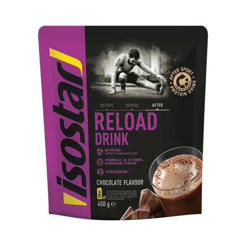 - ISOSTAR Reload Protein Drink (450 g) to regeneracyjny napój czekoladowy, zawierający węglowodany oraz witaminy i minerały, który wspomaga regenerację po treningu. Wspiera budowę i utrzymanie masy mięśniowej oraz prawidłową pracę mięśni.