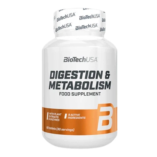 - BIOTECH Digestion & Metabolism to suplement wspierający zdrowie trawienia i metabolizmu, zawierający naturalne ekstrakty roślinne, enzymy trawienne, cynk, chrom i biotynę, zapewniający wielotorowe wsparcie organizmu.