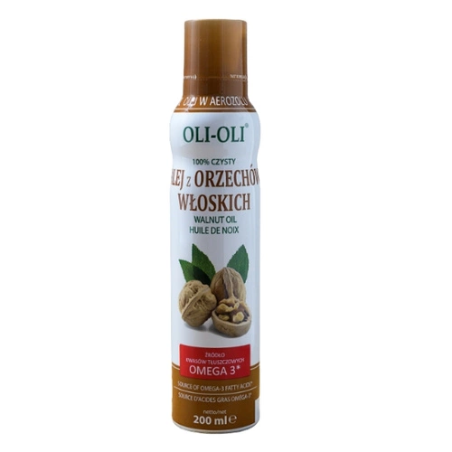 - Naturalny olej z orzechów włoskich w sprayu wzbogaca potrawy orzechowym aromatem, dostarcza kwasy Omega-3 i wspiera zdrowie serca.
