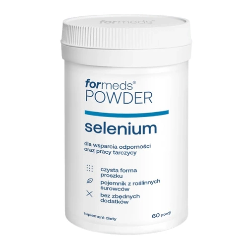 - Sięgnij po FORMEDS Selenium Powder, aby skutecznie zadbać o swoją tarczycę i wzmocnić odporność dzięki wysoko przyswajalnej L-selenometioninie. Ten czysty suplement diety w formie proszku to idealne wsparcie dla Twojego zdrowia każdego dnia.