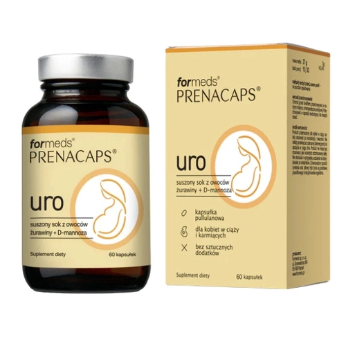 - FORMEDS PRENACAPS Uro to naturalny suplement diety dla kobiet w ciąży, wspierający układ moczowy dzięki D-mannozie i żurawinie, bez zbędnych dodatków, odpowiedni także dla wegan.