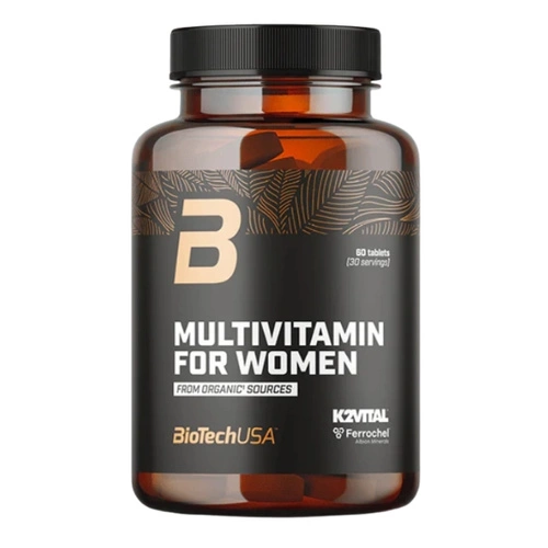 - Ten innowacyjny suplement BioTechUSA Multivitamin for Women From Organic Sources to kompleksowa multiwitamina premium stworzona dla kobiet, dostarczająca aktywne witaminy, organiczne minerały i ekstrakty roślinne, dla wsparcia zdrowia i witalności.