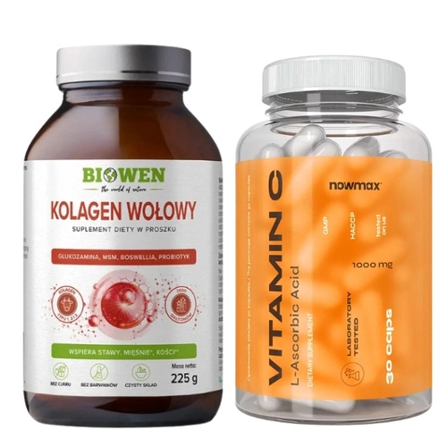 BIOWEN Kolagen Wołowy 225 g + nowmax® Vitamin C 1000mg 30 kaps