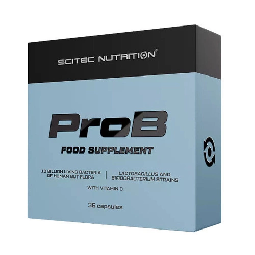 - Scitec Nutrition ProB to probiotyk zawierający 4 szczepy bakterii wzbogacony witaminą C. Pozytywnie wpływa na utrzymanie dobrze prosperującej flory bakteryjnej jelit oraz wspiera naturalną odporność organizmu.