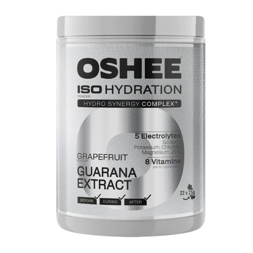 OSHEE ISO Hydration Powder Grapefruit + Guarana to izotonik w proszku stworzony dla osób aktywnych fizycznie, które oprócz nawodnienia i regeneracji potrzebują także naturalnego pobudzenia.