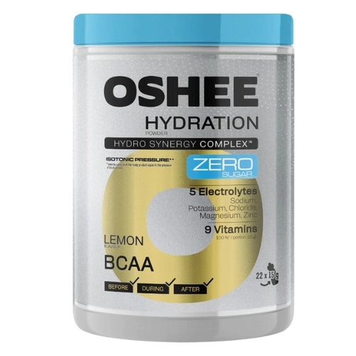 - OSHEE Hydration Powder Zero Jar + BCAA skutecznie nawadnia, uzupełnia elektrolity i wspiera regenerację mięśni. Idealny dla sportowców i osób aktywnych.