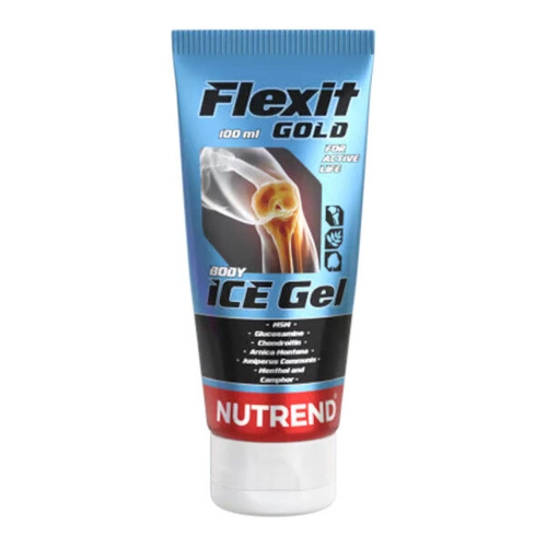 - NUTREND Flexit GOLD Gel Ice to innowacyjny żel o pojemności 100 ml, stworzony z myślą o szybkiej uldze po intensywnym wysiłku fizycznym. Dzięki unikalnej formule zawierającej ekstrakt z chondroityny, glukozaminy i mentolu, łagodzi ból mięśni oraz stawów.