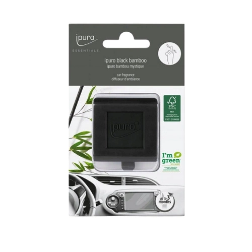 - IPURO Black Bamboo to elegancki odświeżacz do samochodu o świeżo-drzewnym zapachu z nutami jaśminu, cytryny i bursztynu. Zapewnia przyjemną atmosferę w aucie nawet do 3 miesięcy, łącząc styl, trwałość i ekologiczne wykonanie.
