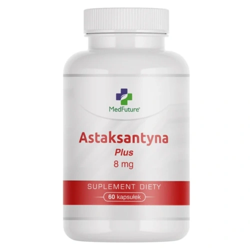 - MEDFUTURE Astaksantyna Plus to suplement z naturalną astaksantyną, który wspiera ochronę komórek przed stresem oksydacyjnym oraz kondycję skóry, oczu i układu krążenia. Polecany szczególnie osobom aktywnym i narażonym na działanie promieni UV.