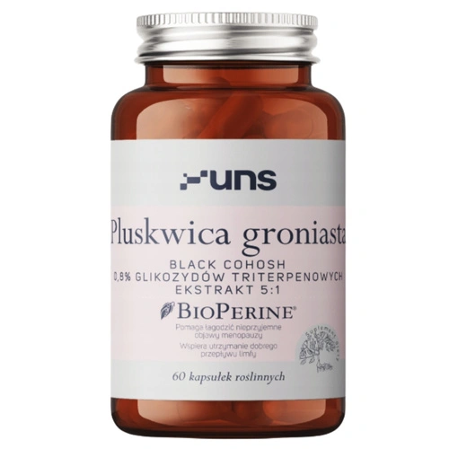 - UNS Pluskwica Groniasta + Bioperine wspiera kobiece zdrowie w okresie menopauzy, łagodząc uderzenia gorąca, nocne poty i zmiany nastroju. Wegańskie kapsułki z dodatkiem BioPerine® zwiększają przyswajalność składników aktywnych.