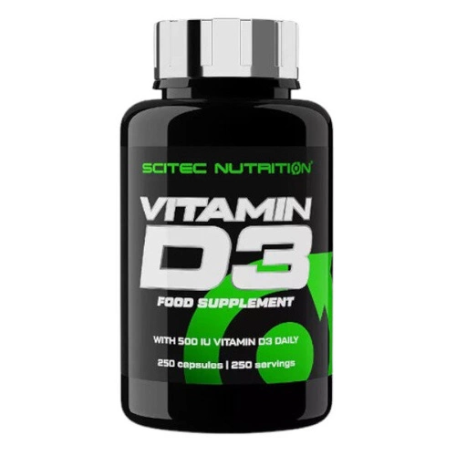 Suplement diety Vitamin D3 marki Scitec Nutrition to bogate źródło witaminy D3, która jest niezbędnym elementem gwarantującym prawidłowe funkcjonowanie ludzkiego organizmu. Witamina D w naturalny sposób jest produkowana podczas wystawienia skóry na działanie światła słonecznego. Taki sposób pozyskiwania witaminy D jest jednak uzależniony od pory roku oraz warunków pogodowych. Bardzo duże znaczenie ma również cera oraz jakość powietrza. Z tego powodu często potrzebna jest dodatkowa suplementacja, która ograniczy ryzyko wystąpienia niedoboru.