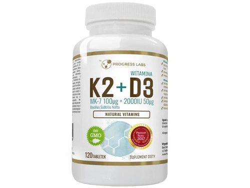 Opinie o PROGRESS LABS Witamina K2 MK-7 100mcg + D3 50 mcg 2000IU 120 tab