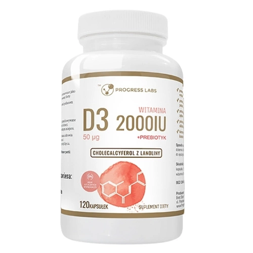 PROGRESS LABS Witamina D3 Forte 2000IU 50mcg 120 tab opis